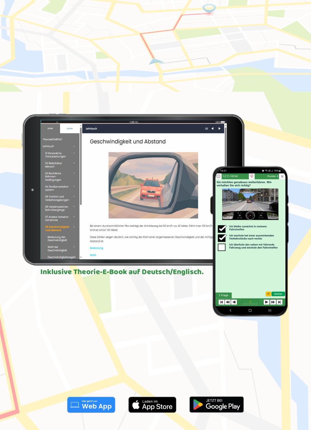 Lerne wann und wo du willst Du kannst jederzeit und überall lernen: egal ob am Laptop zu Hause, auf dem Smartphone auf dem Weg zur Arbeit oder kurz vor deinen Fahrstunden. Wenn du die Multimedia-Inhalte und Videos (ca. 180 MB) vorab speicherst, kannst du sogar komplett offline üben – ohne Internetverbindung.